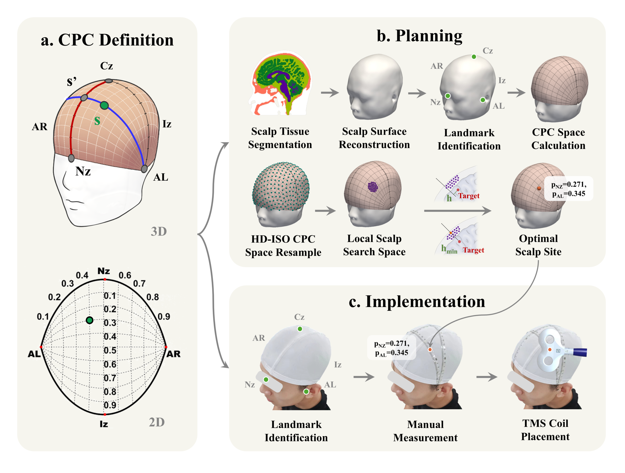 Once you have obtained the Pnz and Pal coordinates from the XYZ2CPC, you can gain a better understanding of how to manually locate the position on the scalp by watching the instructional video provided below from YouTube, or clicking the Bilibili link (Jiang et al., Brain Stimulation, 2022). Furthermore, the transcranial navigation system can be utilized for a more precise option (Xiao et al., Science Advances, 2018).